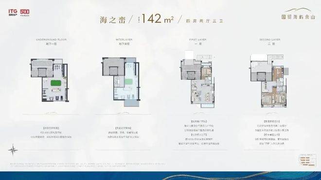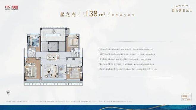 这个四房虽然建面只要138㎡,项目标上叠户型3房3卫的设想!
